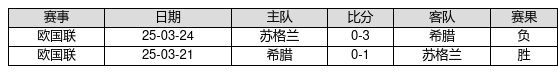 苏格兰 VS 希腊两队近10年的交战次数为2场,苏格兰1胜0平1负,赢球概率为50.0%,平局概率为0.0%,输球概率为50.0%。