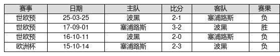 塞浦路斯 VS 波黑两队近10年的交战次数为4场,塞浦路斯1胜0平3负,赢球概率为25.0%,平局概率为0.0%,输球概率为75.0%。