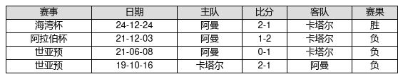 阿曼 VS 卡塔尔两队近10年的交战次数为4场,阿曼1胜0平3负,赢球概率为25.0%,平局概率为0.0%,输球概率为75.0%。