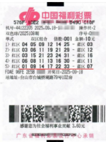 9月18日,双色球第2025108期开奖,全国共中出5注一等奖,其中广东佛山市和江门市各中出1注。江门市的大奖花落台城桥湖79号的44122205福彩销售站点,中奖彩票是一张投注金额为10元的5注单式票,中奖奖金超过830万 元。