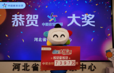 11月5日晚,超级大乐透第25126期开奖,前区号码为01、08、18、27、30,后区号码为06、07,河北廊坊的1310023551体彩代销网点售出的中奖彩票,幸运中得一等奖,奖金高达7397万元,刷新了河北体彩历史最高奖金纪录。