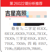 26022期:吉星高照 发表于:2026-01-22 15:20:29 浏览次数:358 上一篇:26022期:双喜临门 下一篇:没有了 【主攻头】 范围码15红10 点播26029期 【春哥打奖】 范围码15红10 点播26029期 【金山银山】 范围码15红9 点播26029期 排列五杀码荣誉榜