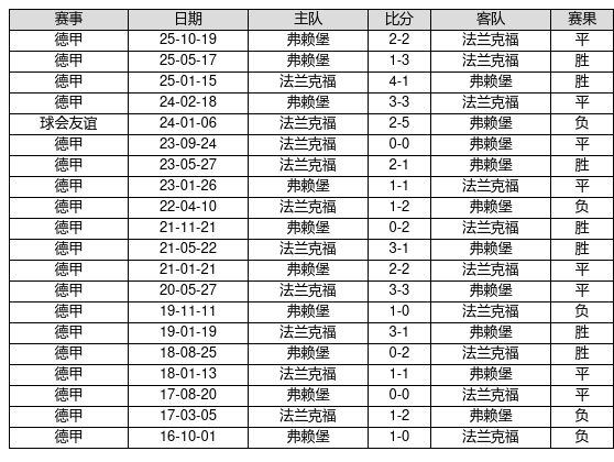 法兰克福 VS 弗赖堡两队近10年的交战次数为20场,法兰克福7胜8平5负,赢球概率为35.0%,平局概率为40.0%,输球概率为25.0%。
