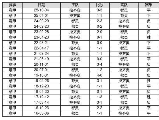 都灵 VS 拉齐奥两队近10年的交战次数为20场,都灵3胜9平8负,赢球概率为15.0%,平局概率为45.0%,输球概率为40.0%。