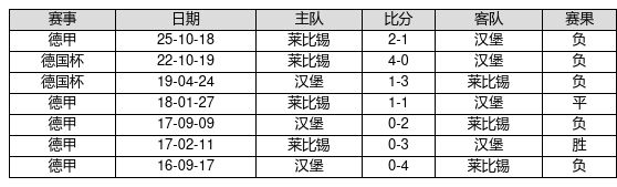 汉堡 VS 莱比锡两队近10年的交战次数为7场,汉堡1胜1平5负,赢球概率为14.3%,平局概率为14.3%,输球概率为71.4%。