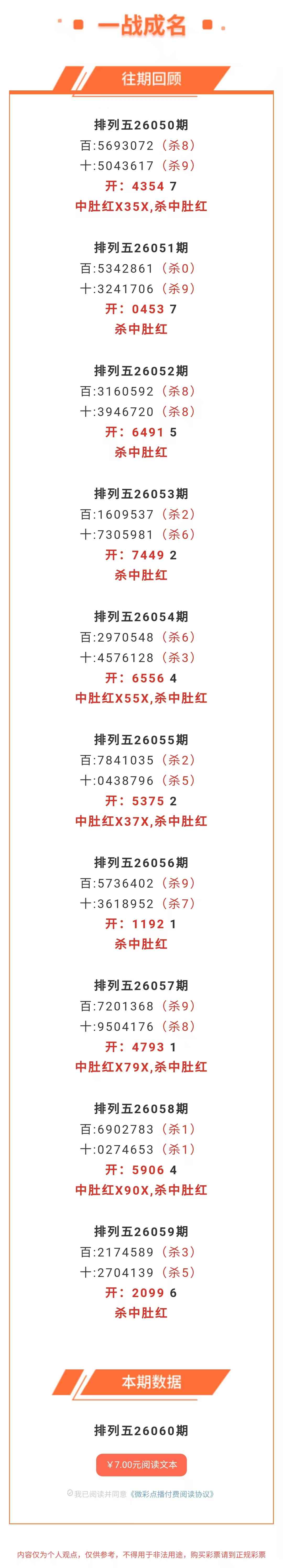 【排列五-060期】杀中肚26连红,本月圈红5次中肚,中肚近10红5;上期杀中肚红 发表于:2026-03-11 14:55:42 浏览次数:310 上一篇: 下一篇:没有了 【圣斗士】 范围码15红10 点播26065期 【脚踏实地】 范围码15红10 点播26065期 【破穷行动】 范围码15红9 点播26065期 排列五杀码荣誉榜