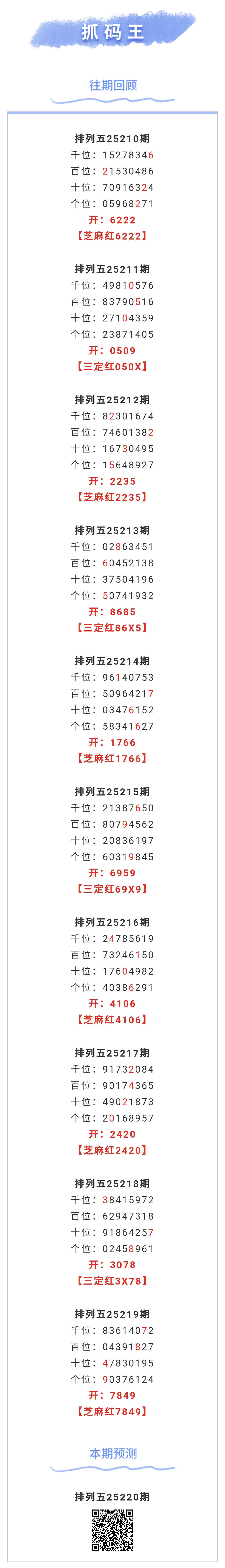 【排列五-25220期】本月圈红9次芝麻,芝麻近10红6;上期芝麻红7849 发表于:2025-08-18 10:45:40 浏览次数:408 上一篇: 下一篇:没有了 【春哥打奖】 范围码14红11 更新中 【天意人生】 范围码14红9 更新中 【彩女】 范围码14红9 更新中 排列五杀码荣誉榜