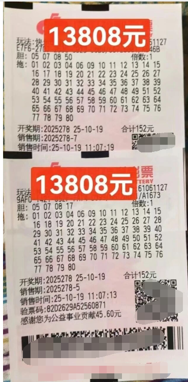 2025年10月19日,注定是个幸运的日子✨。两张投注票,同期开奖,两人同时揽获万元奖金,这样的“双重惊喜”在福彩“快乐8”玩法中精彩上演!
