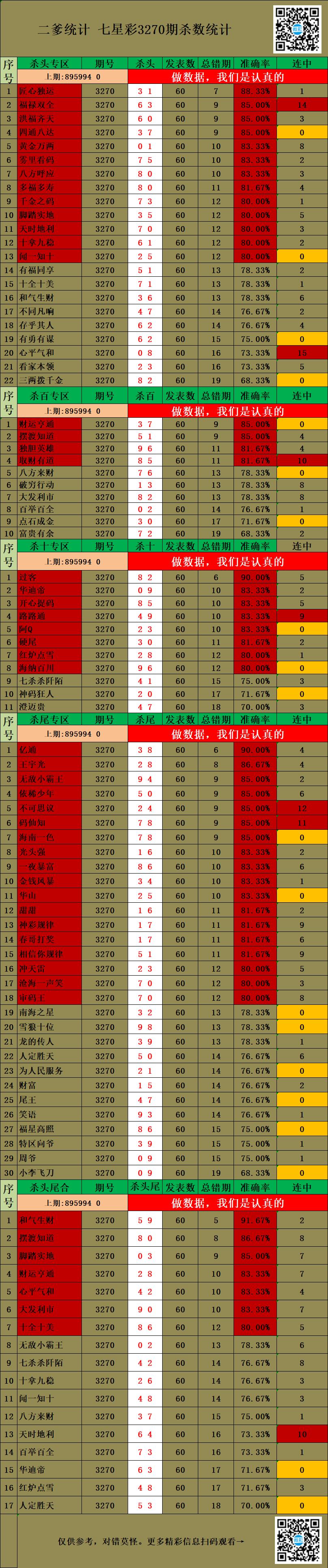 3270期:二爹统计 发表于:2025-11-26 15:00:51 浏览次数:461 上一篇:3270期:红哥统计 下一篇:25316期:【特区排列五】“大富翁”芝麻红9736,2连红;点播厅29位分析师圈红芝麻! 【主攻头】 范围码15红10 点播26029期 【春哥打奖】 范围码15红10 点播26029期 【金山银山】 范围码15红9 点播26029期 排列五杀码荣誉榜