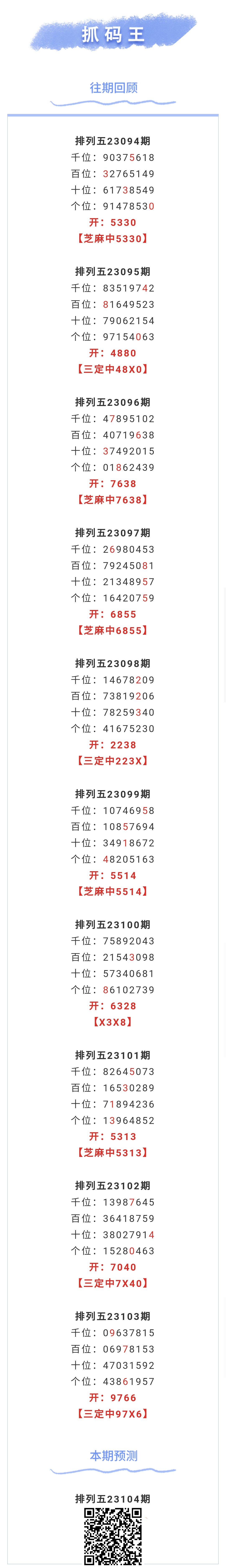 【排列五-104期】本月圈中11次芝麻,芝麻近10中5;上期三定中97X6 发表于:2023-04-24 13:31:44 浏览次数:1657 上一篇: 下一篇:没有了 【无敌通杀】 范围码15红10 点播25327期 【笑语】 范围码15红9 点播25327期 【天时地利】 范围码15红9 点播25327期 排列五杀码荣誉榜