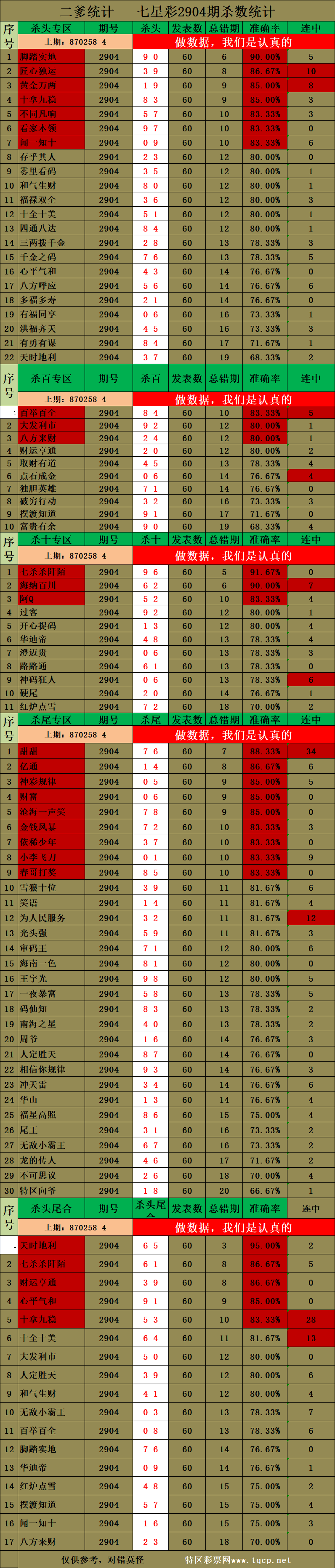 2904期:二爹统计 发表于:2023-06-26 12:01:09 浏览次数:1786 上一篇:2904期:红哥统计 下一篇:快乐8 北国老马 等2位分析师20码中11码! 【无敌通杀】 范围码15红10 点播25327期 【笑语】 范围码15红9 点播25327期 【天时地利】 范围码15红9 点播25327期 排列五杀码荣誉榜