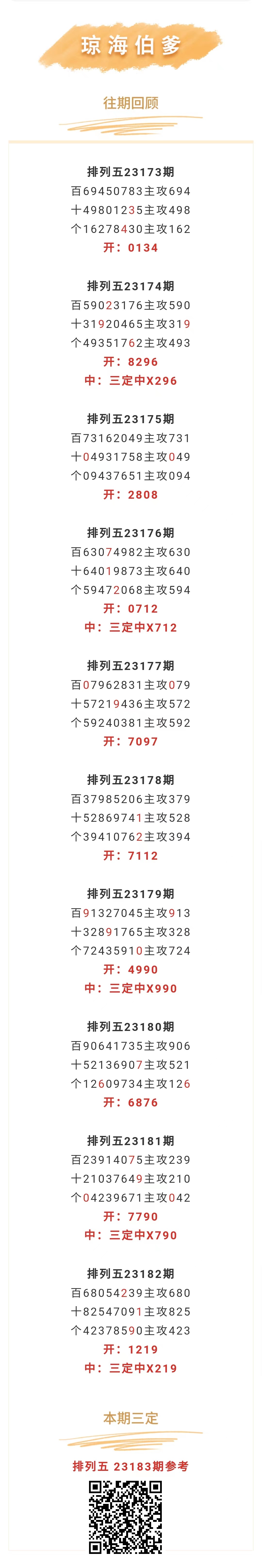【排列五-183期】上期三定中X219、2连中;本月圈中5次三定,三定近10中5 发表于:2023-07-12 13:10:29 浏览次数:1185 上一篇: 下一篇:没有了 【无敌通杀】 范围码15红10 点播25327期 【笑语】 范围码15红9 点播25327期 【天时地利】 范围码15红9 点播25327期 排列五杀码荣誉榜