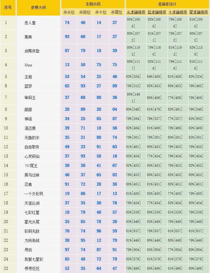 七星彩2962期特区杀二头二尾统计 发表于:2023-11-13 10:38:44 浏览次数:2636 详情登录https://www.tqcp.net/kill_new_sj.html 上一篇:七星彩2962期特区杀一头一尾统计 下一篇:【特区排列五】3位分析师圈中芝麻1616;点播“期期上奖”芝麻3连中! 【无敌通杀】 范围码15红10 点播25327期 【笑语】 范围码15红9 点播25327期 【天时地利】 范围码15红9 点播25327期 七星彩杀码荣誉榜