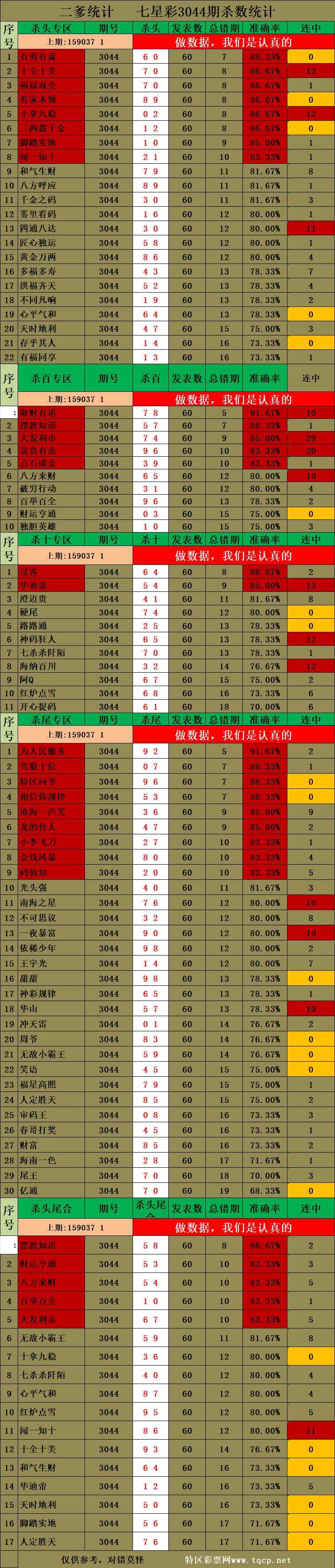 3044期:二爹统计 发表于:2024-06-01 10:32:38 浏览次数:904 上一篇:3044期:红哥统计 下一篇:没有了 【笑语】 范围码15红10 点播25326期 【天时地利】 范围码15红9 点播25326期 【无敌通杀】 范围码15红9 点播25326期 排列五杀码荣誉榜