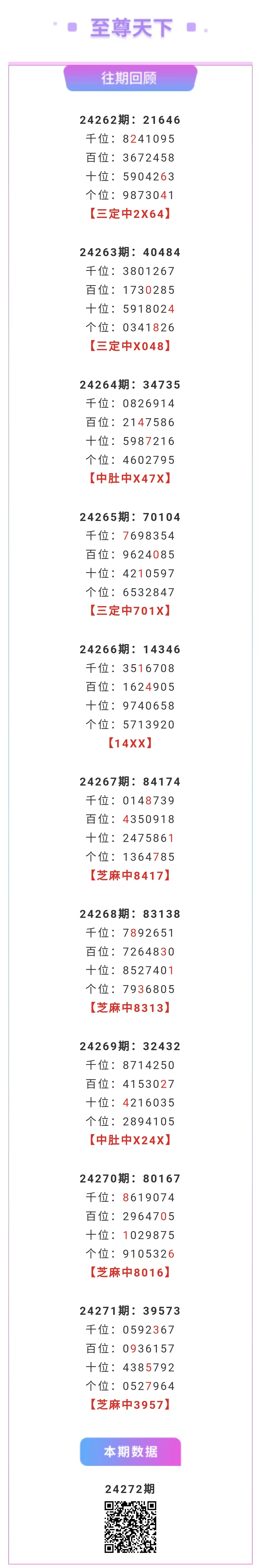 【排列五-24272期】本月圈中4次芝麻,芝麻近10中4;上期芝麻中3957 发表于:2024-10-12 11:34:24 浏览次数:436 上一篇: 下一篇:没有了 【无敌通杀】 范围码15红10 点播25327期 【笑语】 范围码15红9 点播25327期 【天时地利】 范围码15红9 点播25327期 排列五杀码荣誉榜