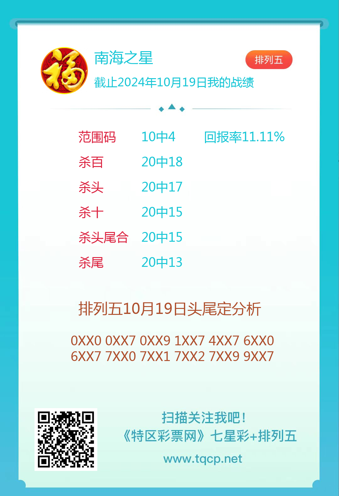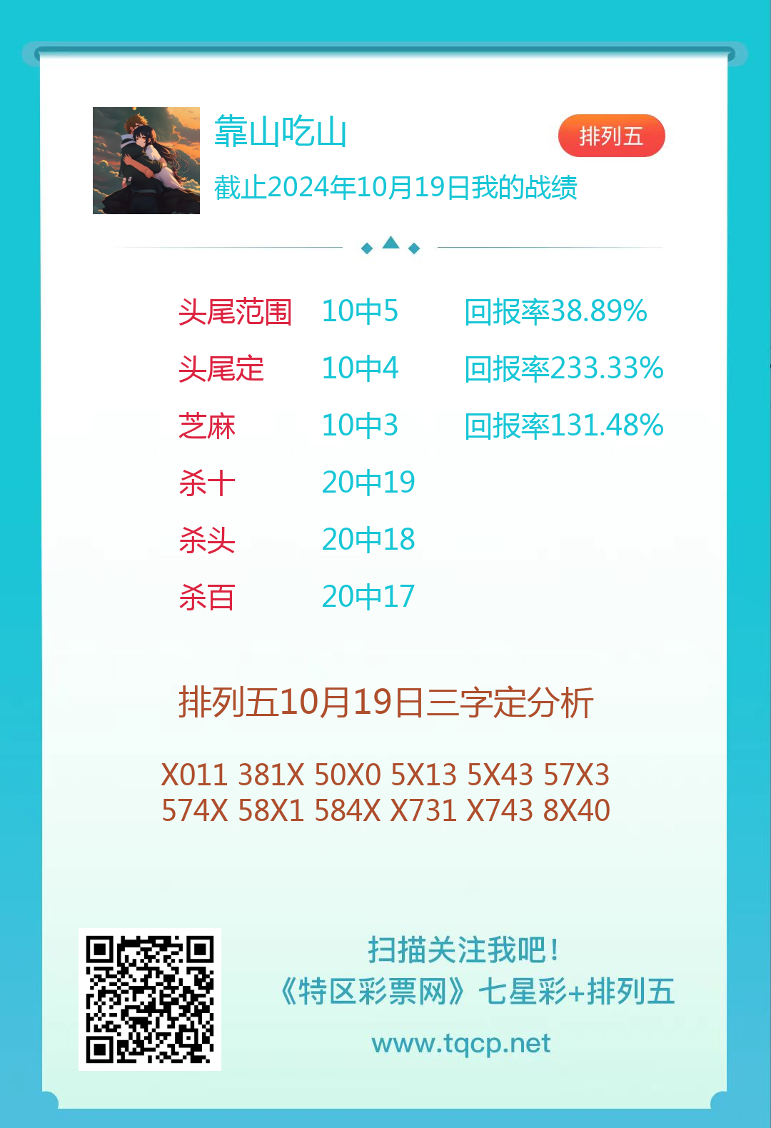 排列五24279期点播推荐靠山吃山、开心笑和南海之星3位分析师 发表于:2024-10-19 10:07:00 浏览次数:750 上一篇:3102期:二爹统计 下一篇:七星彩3102期特区杀一头一尾统计 【笑语】 范围码15红10 点播25326期 【天时地利】 范围码15红9 点播25326期 【无敌通杀】 范围码15红9 点播25326期 排列五杀码荣誉榜