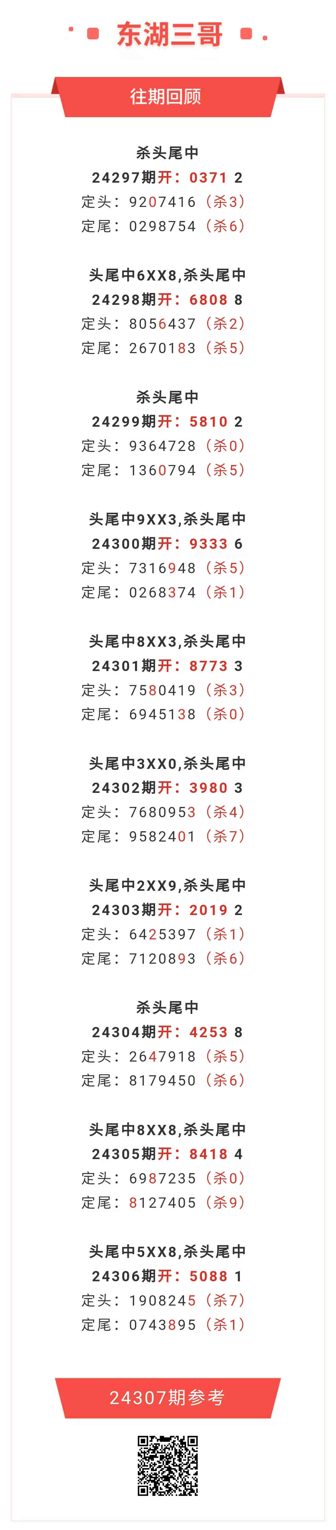 【排列五-307期】本月圈中10次头尾,头尾近10中7;上期头尾中5XX8 发表于:2024-11-16 12:02:05 浏览次数:458 上一篇: 下一篇:没有了 【春哥打奖】 范围码15红10 点播26031期 【志存高远1】 范围码15红9 点播26031期 【彩女】 范围码15红9 点播26031期 排列五杀码荣誉榜