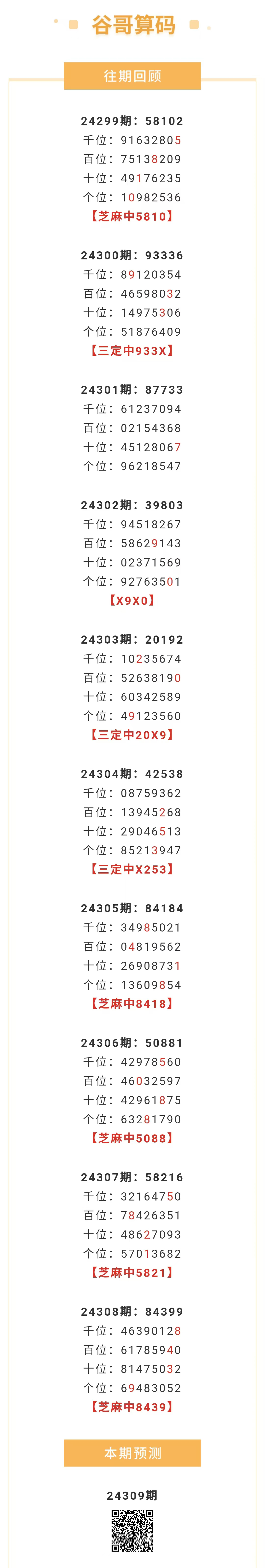 【排列五-24309期】本月圈中8次芝麻,芝麻近10中5;上期芝麻中8439 发表于:2024-11-18 11:53:32 浏览次数:487 上一篇: 下一篇:没有了 【笑语】 范围码15红10 点播25326期 【天时地利】 范围码15红9 点播25326期 【无敌通杀】 范围码15红9 点播25326期 排列五杀码荣誉榜