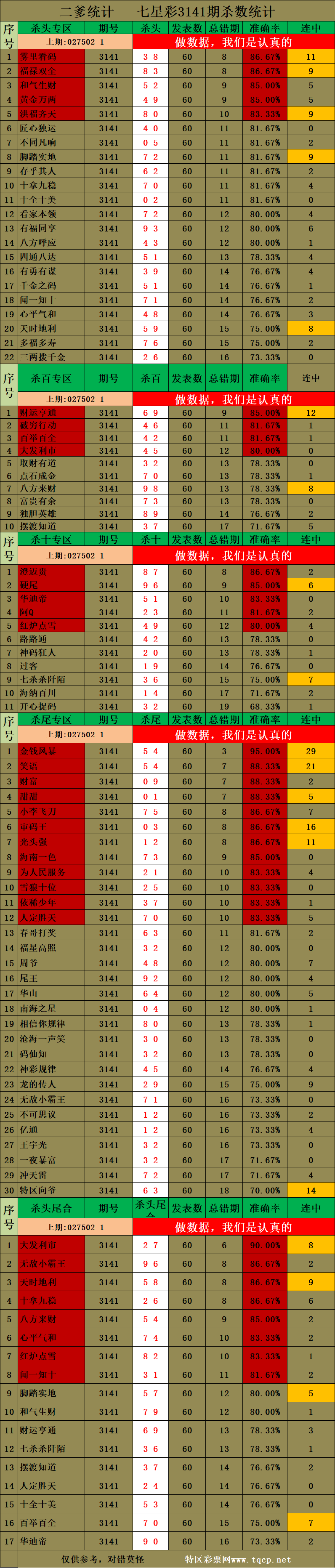 3141期:二爹统计 发表于:2025-01-18 10:03:12 浏览次数:721 上一篇:3141期:红哥统计 下一篇:没有了 【笑语】 范围码15红10 点播25326期 【天时地利】 范围码15红9 点播25326期 【无敌通杀】 范围码15红9 点播25326期 排列五杀码荣誉榜
