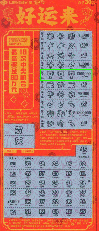 赤峰的一位彩民幸运中得福彩刮刮乐10万元大奖