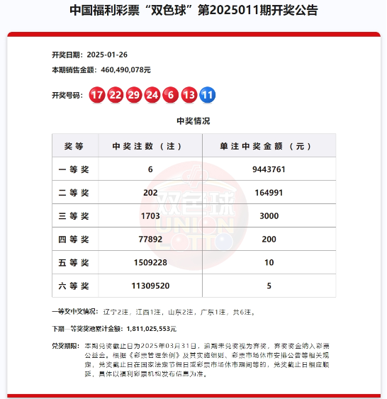 萍乡彩民喜中双色球1注一等奖、1注二等奖、18注三等奖及其他若干小奖,总奖金达到9676002元。该大奖出自萍乡市芦溪县36050417号投注站,中奖票为一张336元的复式票。这是我省2025年首个双色球一等奖。
