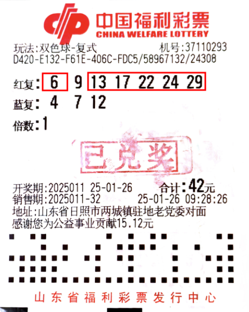 在休市前的最后一期双色球开奖中,日照的彩友喜中双色球二等奖3注,总奖金超过49万元。2月6日,彩票开市的第一天,中奖者已经完成了兑奖。2025年1月26日晚,双色球第2025011期开奖,这是休市前的最后一期,红球号码为06、13、17、22、24、29,蓝球号码为11。日照彩友凭借42元的7+3小复式投注,幸运中得了3注二等奖,总奖金为49.8万余元。中奖彩友平时偏爱小复式投注,奖项来自日照市两城镇的福彩站点,编号为37110293。随着这一消息的传开,许多购彩者纷纷前往该站点购买彩票,希望能分享这份幸运。目前双色球奖池余额仍有18.4亿余元,单注最高奖金可达1000万元!