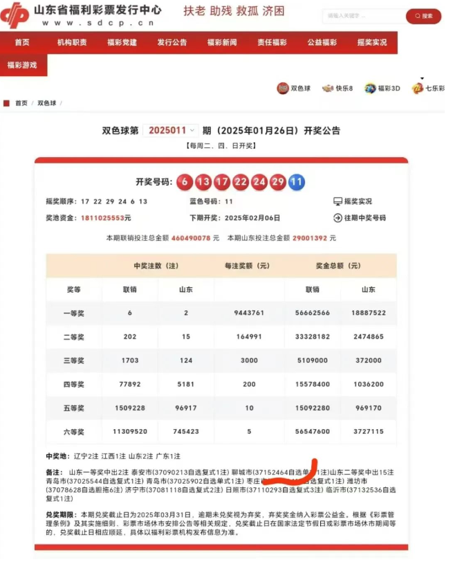 茌平市民仅用2元投注便幸运中得944万元大奖 发表于:2025-02-08 15:07:04 浏览次数:734 在春节前的最后一期福彩双色球开奖中,茌平市民凭借仅2元的投注幸运中得944万元大奖,创造了一夜暴富的奇迹,给这个春节增添了无尽的喜悦与惊喜。根据开奖公告,1月26日晚,双色球第2025011期开奖,当期全国共中出6注一等奖,每注奖金约944万元。而这注大奖则出现在茌平区中心街大隅首往西路北的一家福彩店,成为令人艳羡的幸运之地。 上一篇:49万元!双色球小复式幸运中得二等奖3注 下一篇:没有了 【春哥打奖】 范围码15红11 点播26030期 【天意人生】 范围码15红9 点播26030期 【彩女】 范围码15红9 点播26030期 排列五杀码荣誉榜