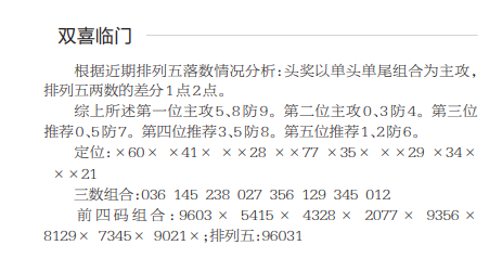 25038期:双喜临门 发表于:2025-02-17 15:06:59 浏览次数:602 上一篇:25038期:吉星高照 下一篇:七星彩3150期特区杀一头一尾统计 【笑语】 范围码15红10 点播25326期 【天时地利】 范围码15红9 点播25326期 【无敌通杀】 范围码15红9 点播25326期 排列五杀码荣誉榜