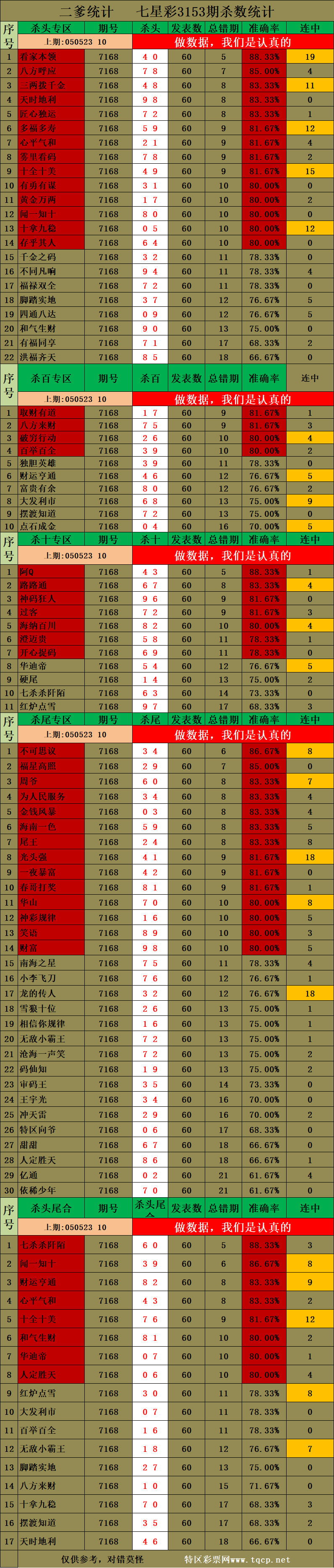 3153期:二爹统计 发表于:2025-02-24 10:33:12 浏览次数:750 上一篇:3153期:红哥统计 下一篇:没有了 【笑语】 范围码15红10 点播25326期 【天时地利】 范围码15红9 点播25326期 【无敌通杀】 范围码15红9 点播25326期 排列五杀码荣誉榜