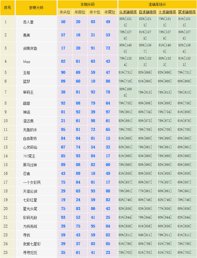 七星彩3170期特区杀二头二尾统计 发表于:2025-04-05 16:51:38 浏览次数:654 详情登录https://www.tqcp.net/kill_new_sj.html 上一篇:七星彩3170期特区杀三头三尾统计 下一篇:七星彩3170期特区杀一头一尾统计 【笑语】 范围码15红10 点播25326期 【天时地利】 范围码15红9 点播25326期 【无敌通杀】 范围码15红9 点播25326期 七星彩杀码荣誉榜