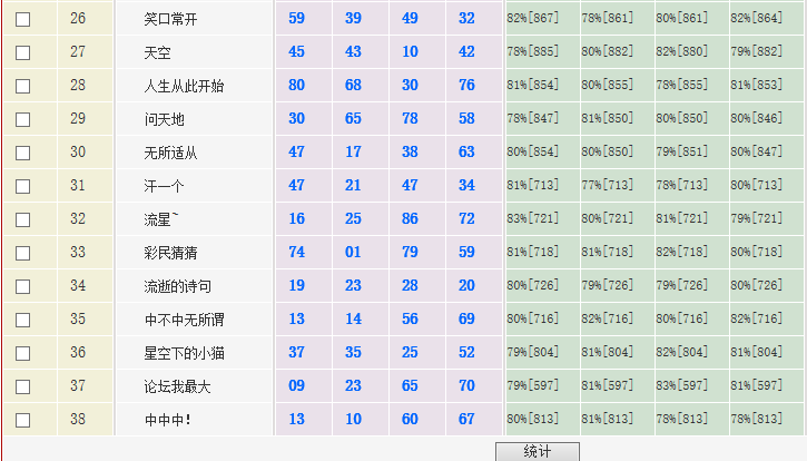 七星彩3181期特区杀二头二尾统计 发表于:2025-04-30 16:45:31 浏览次数:561 上一篇:七星彩3181期特区杀一头一尾统计 下一篇:七星彩3181期特区杀三头三尾统计 【无敌通杀】 范围码15红10 点播25327期 【笑语】 范围码15红9 点播25327期 【天时地利】 范围码15红9 点播25327期 七星彩杀码荣誉榜
