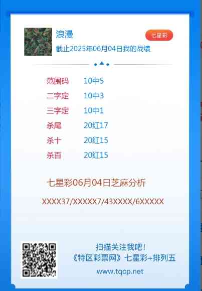 七星彩3196期点播推荐哥炸中、浪漫和独钓寒月夜 3位分析师 发表于:2025-06-04 15:47:09 浏览次数:617 上一篇: 下一篇:排列五25145期点播推荐头奖中万家,海口一笑和阿Q 3位分析师 【春哥打奖】 范围码15红11 点播26030期 【天意人生】 范围码15红9 点播26030期 【彩女】 范围码15红9 点播26030期 七星彩杀码荣誉榜