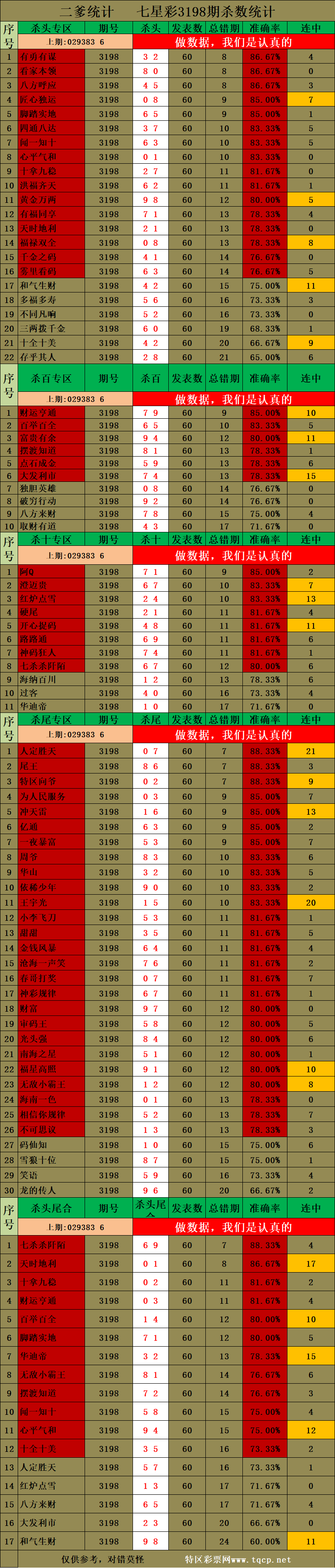 3198期:二爹统计 发表于:2025-06-09 10:33:09 浏览次数:600 上一篇:3198期:红哥统计 下一篇:没有了 【笑语】 范围码15红10 点播25326期 【天时地利】 范围码15红9 点播25326期 【无敌通杀】 范围码15红9 点播25326期 排列五杀码荣誉榜