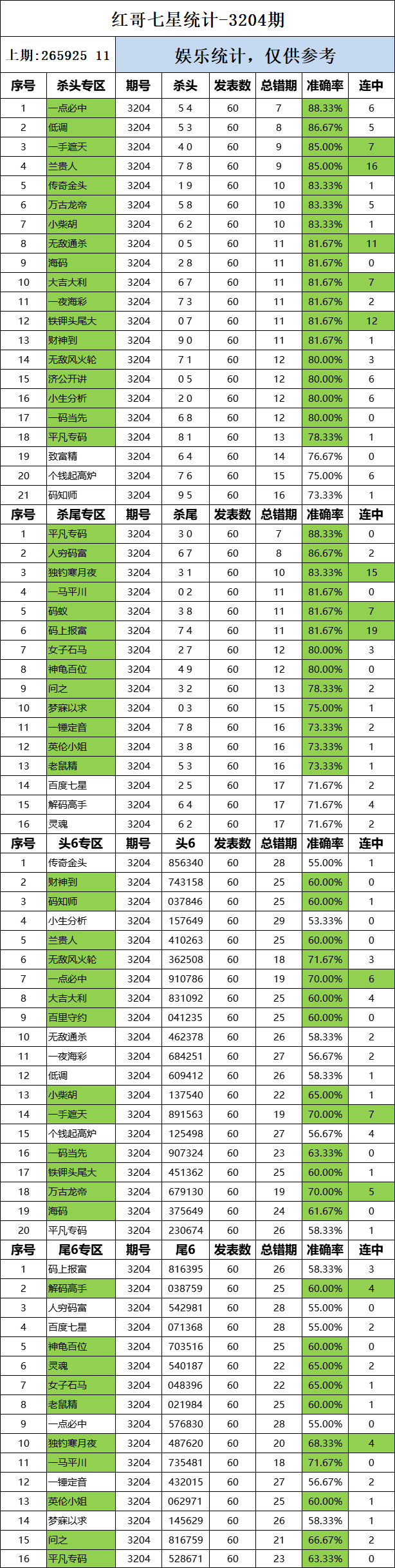 3204期:红哥统计 发表于:2025-06-23 10:03:10 浏览次数:513 上一篇:排列五第25164期志存高远 下一篇:3204期:二爹统计 【春哥打奖】 范围码14红11 更新中 【天意人生】 范围码14红9 更新中 【彩女】 范围码14红9 更新中 排列五杀码荣誉榜