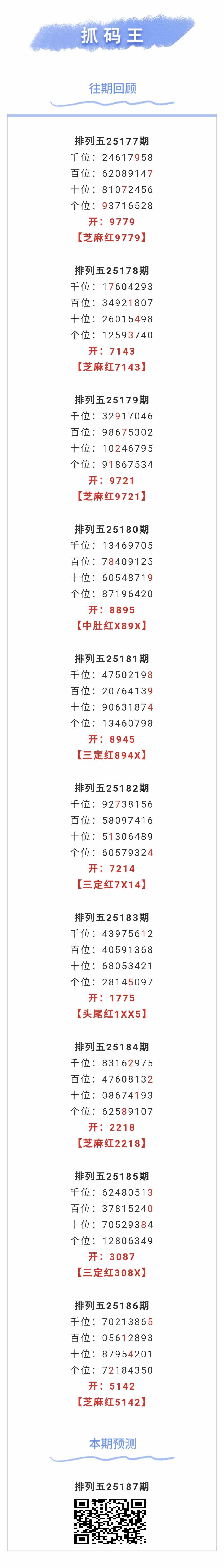 【排列五-187期】本月圈红7次芝麻,芝麻近10红5;上期芝麻红5142 发表于:2025-07-16 14:55:03 浏览次数:391 上一篇:七星彩25081期随大流本期死号分析 下一篇:没有了 【春哥打奖】 范围码15红11 点播26030期 【天意人生】 范围码15红9 点播26030期 【彩女】 范围码15红9 点播26030期 排列五杀码荣誉榜
