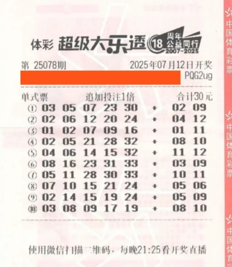 在接受采访时,徐先生透露了自己的购彩习惯:“我坚持每期购买大乐透已经有两三年了,基本都在固定的几家体彩店购买,一直采用机选号码的方式,每次投注时都会选择追加。”他补充道:“通常,我会先机选10注并追加一倍,然后从中挑选2-3注进行3-4倍的追加投注。这种模式我从去年年底开始就坚持下来了。”也许正是这种坚持追加的习惯和机选号码的巧合,让徐先生获得了幸运大奖。本期大乐透的中奖号码为前区07、10、15、21、24,后区05、06。由于徐先生选择了追加投注,他还额外获得了800万元的追加奖金,总共收获1800万元大奖。追加投注是大乐透的一项特色玩法,购彩者在每注2元基本投注的基础上,额外支付1元进行追加,若中奖可获得80%的浮动奖金。每一张体育彩票都在为公益事业贡献力量,每一次理性投注,都是对美好生活的真诚期望。杭州徐先生的1800万大奖,不仅来自于他“机选+坚持追加”的购彩习惯,更是体育彩票“公益体彩 乐善人生”理念的体现。希望这份幸运能够传递善意与希望,影响更远的地方。