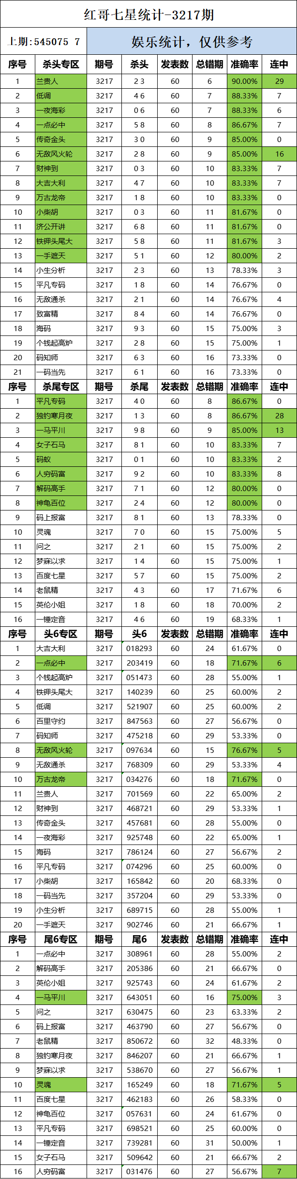 3217期:红哥统计 发表于:2025-07-23 13:32:54 浏览次数:483 上一篇:3217期:二爹统计 下一篇:3217期:二爹统计 【春哥打奖】 范围码14红11 更新中 【天意人生】 范围码14红9 更新中 【彩女】 范围码14红9 更新中 排列五杀码荣誉榜