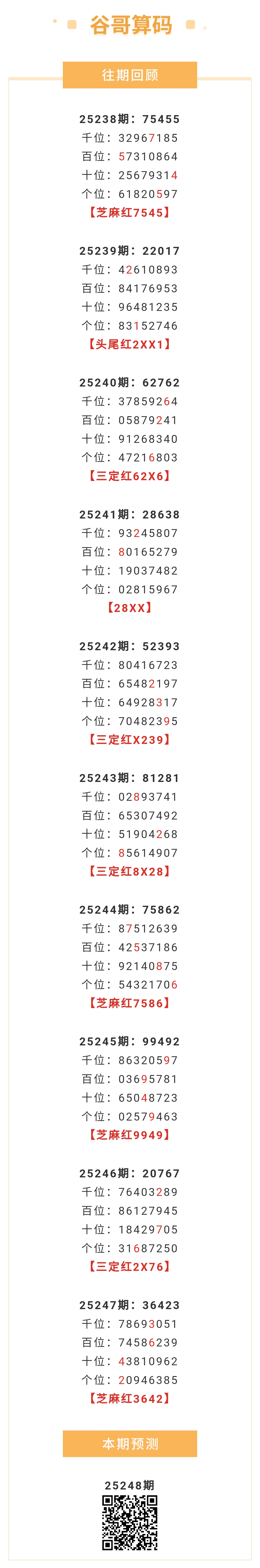 【排列五-25248期】本月圈红7次芝麻,芝麻近10红4;上期芝麻红3642 发表于:2025-09-15 10:07:27 浏览次数:338 上一篇: 下一篇:没有了 【笑语】 范围码15红10 点播25326期 【天时地利】 范围码15红9 点播25326期 【无敌通杀】 范围码15红9 点播25326期 排列五杀码荣誉榜