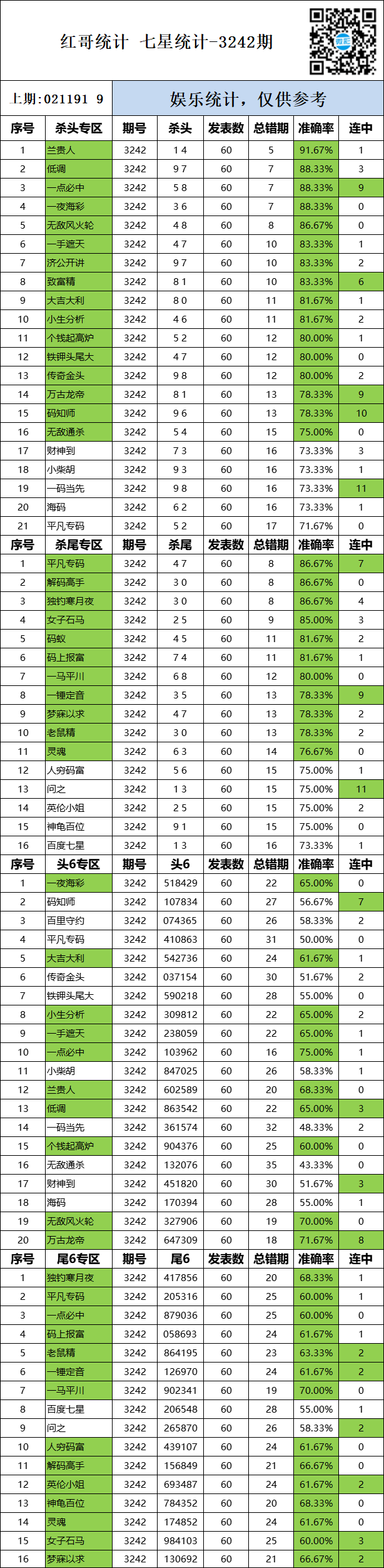 3242期:红哥统计 发表于:2025-09-20 11:31:25 浏览次数:377 上一篇:七星彩3242期特区杀三头三尾统计 下一篇:3242期:二爹统计 【笑语】 范围码15红11 点播25325期 【在现江湖】 范围码15红9 点播25325期 【天时地利】 范围码15红9 点播25325期 排列五杀码荣誉榜