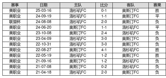 奥斯汀FC VS 洛杉矶FC两队近10年的交战次数为12场,奥斯汀FC3胜2平7负,赢球概率为25.0%,平局概率为16.7%,输球概率为58.3%。