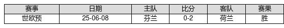 荷兰 VS 芬兰两队近10年的交战次数为1场,荷兰1胜0平0负,赢球概率为100.0%,平局概率为0.0%,输球概率为0.0%。