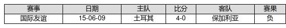 保加利亚 VS 土耳其两队近10年的交战次数为1场,保加利亚0胜0平1负,赢球概率为0.0%,平局概率为0.0%,输球概率为100.0%。