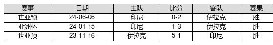 伊拉克 VS 印尼两队近10年的交战次数为3场,伊拉克3胜0平0负,赢球概率为100.0%,平局概率为0.0%,输球概率为0.0%。