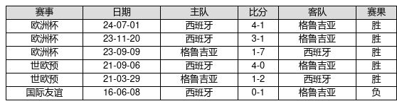 西班牙 VS 格鲁吉亚两队近10年的交战次数为6场,西班牙5胜0平1负,赢球概率为83.3%,平局概率为0.0%,输球概率为16.7%。
