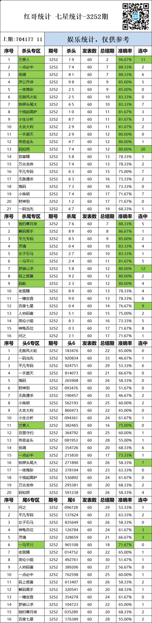 3252期:红哥统计 发表于:2025-10-15 11:00:54 浏览次数:385 上一篇:3252期:二爹统计 下一篇:3252期:二爹统计 【笑语】 范围码15红11 点播25325期 【在现江湖】 范围码15红9 点播25325期 【天时地利】 范围码15红9 点播25325期 排列五杀码荣誉榜