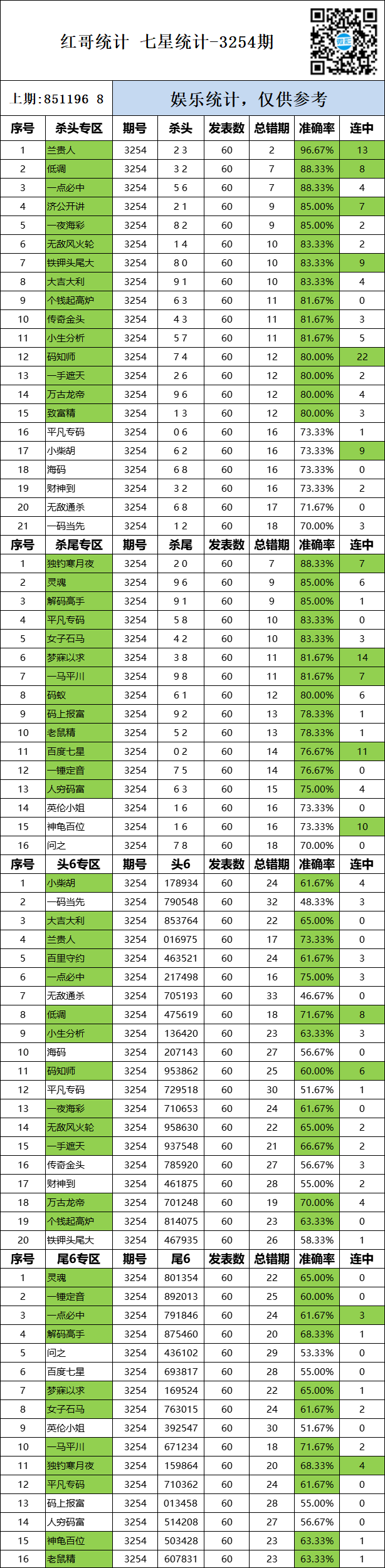 3254期:红哥统计 发表于:2025-10-20 10:00:54 浏览次数:400 上一篇:排列五第25279期志存高远 下一篇:3254期:二爹统计 【主攻头】 范围码15红10 点播26029期 【春哥打奖】 范围码15红10 点播26029期 【金山银山】 范围码15红9 点播26029期 排列五杀码荣誉榜