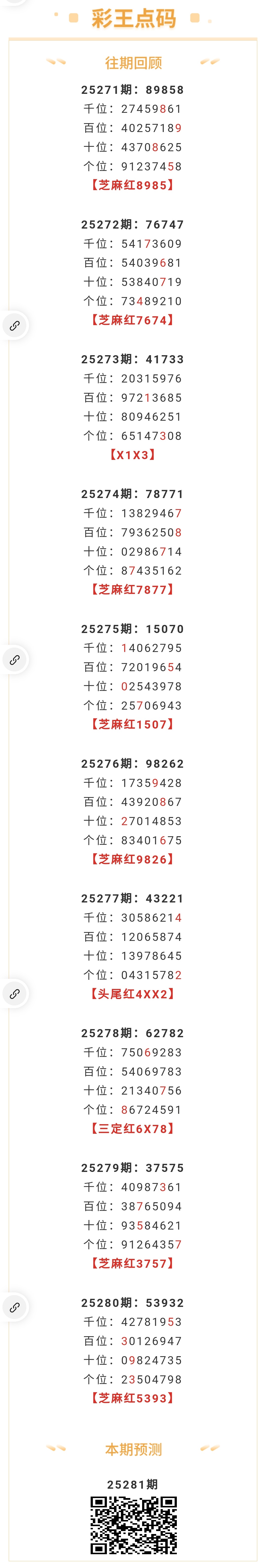 【排列五-25281期】芝麻2连红,本月圈红10次芝麻,芝麻近10红7;上期芝麻红5393 发表于:2025-10-22 12:20:23 浏览次数:320 上一篇: 下一篇:没有了 【笑语】 范围码15红10 点播25326期 【天时地利】 范围码15红9 点播25326期 【无敌通杀】 范围码15红9 点播25326期 排列五杀码荣誉榜