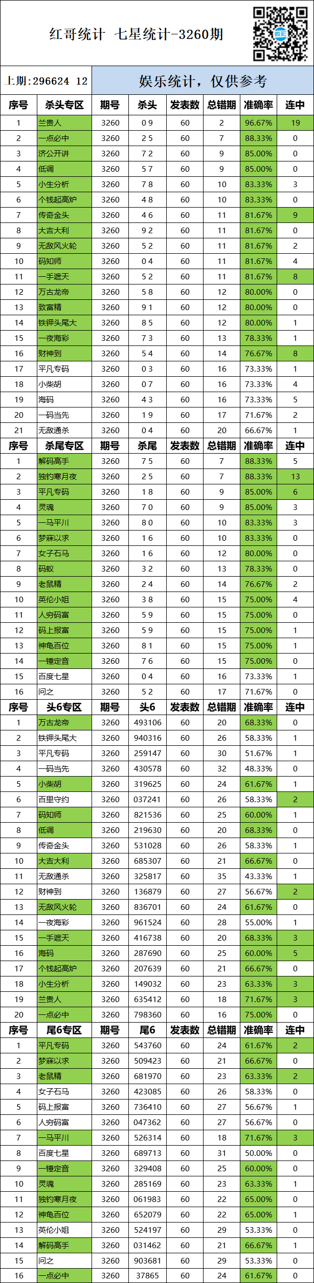 3260期:红哥统计 发表于:2025-11-03 11:30:54 浏览次数:400 上一篇:3260期:二爹统计 下一篇:3260期:二爹统计 【主攻头】 范围码15红10 点播26029期 【春哥打奖】 范围码15红10 点播26029期 【金山银山】 范围码15红9 点播26029期 排列五杀码荣誉榜