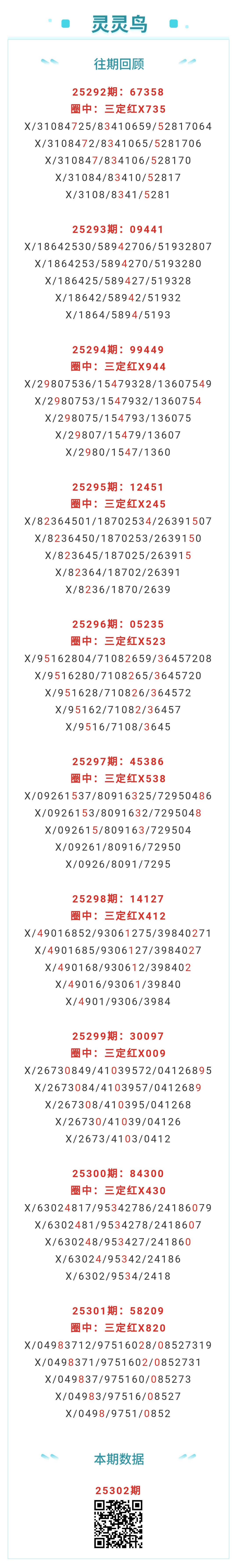 【排列五-25302期】三定8连红!本月圈红9次三定,三定近10红9;上期三定红X820 发表于:2025-11-12 11:44:14 浏览次数:358 上一篇: 下一篇:没有了 【春哥打奖】 范围码15红11 点播26030期 【天意人生】 范围码15红9 点播26030期 【彩女】 范围码15红9 点播26030期 排列五杀码荣誉榜
