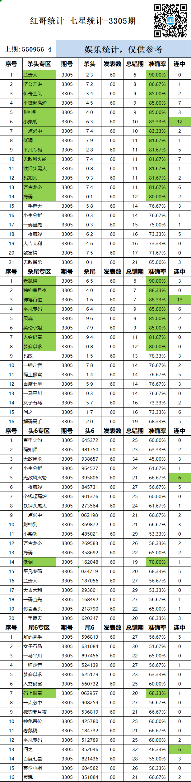 3305期:红哥统计 发表于:2026-02-25 16:30:31 浏览次数:387 上一篇:3305期:二爹统计 下一篇:3305期:二爹统计 【脚踏实地】 范围码15红11 点播26064期 【圣斗士】 范围码15红10 点播26064期 【徐艾艾】 范围码15红10 点播26064期 排列五杀码荣誉榜